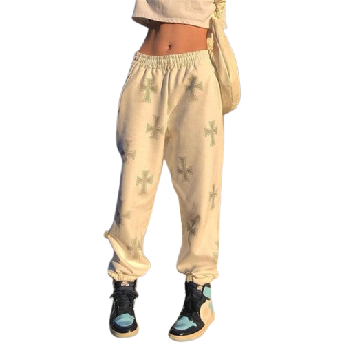 Wygodne i oversizeowe dresy z krzyżami ze sztucznych diamencików.